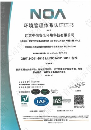 江蘇中信安全環(huán)境科技有限公司成立于2002年 是一家綜合性的海域使用、生態(tài)環(huán)境與安全生產(chǎn)專業(yè)技術(shù)服務(wù)機(jī)構(gòu),主要為海洋工程、港口碼頭、各類生產(chǎn)企業(yè)等提供海域使用、生態(tài)環(huán)境與安全生產(chǎn)整體解決方案。公司辦公面積2560平米,總部位于南京市中山南路414號投資大廈23樓,檢測中心位于南京市江寧區(qū)菲尼克斯70號1號樓。公司是中國安全生產(chǎn)協(xié)會安全評價專業(yè)委員會主任委員單位,省交通運(yùn)輸協(xié)會港航分會會員單位,省海洋經(jīng)濟(jì)協(xié)會會員單位,省社會穩(wěn)定風(fēng)險(xiǎn)評估促進(jìn)會會員單位,2012被省經(jīng)信委評為“江蘇省星級公共服務(wù)平臺”單位,2018年起連續(xù)為國家高新技術(shù)企業(yè)。